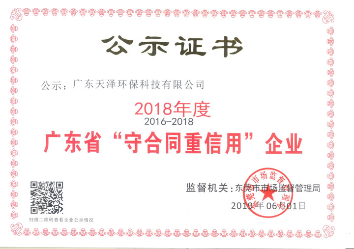• 廣東省守合同重信用企業
