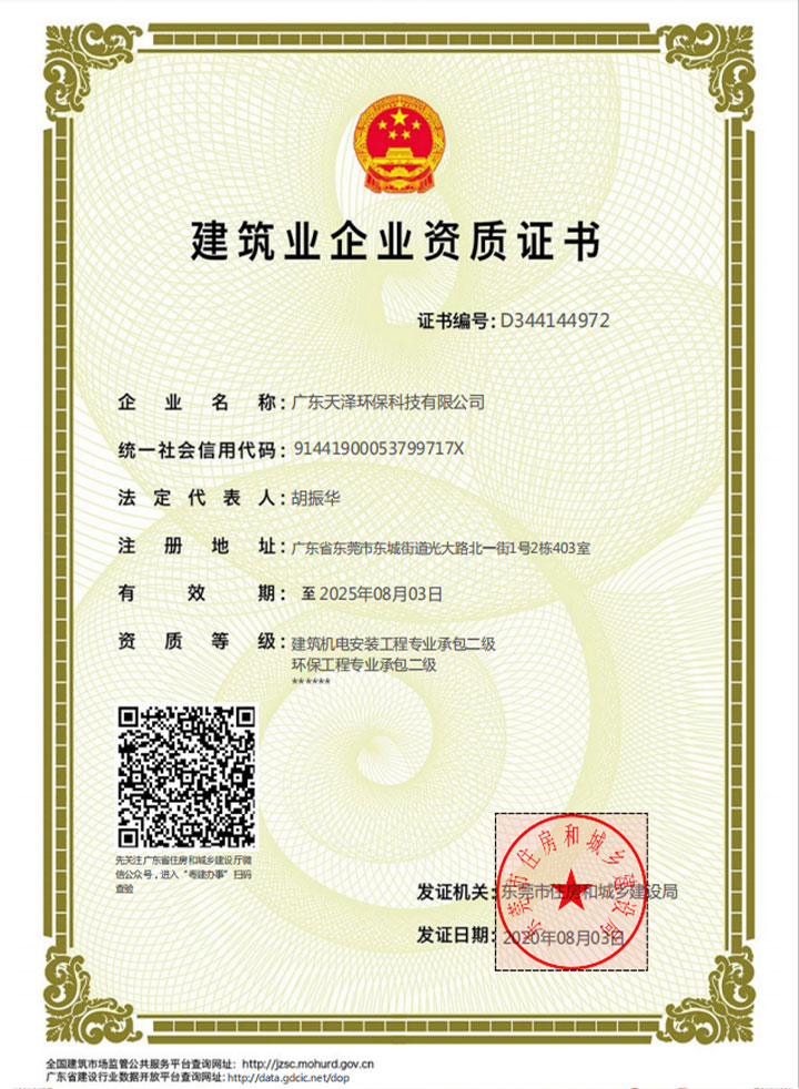 Honor 天澤污水處理工程公司資質